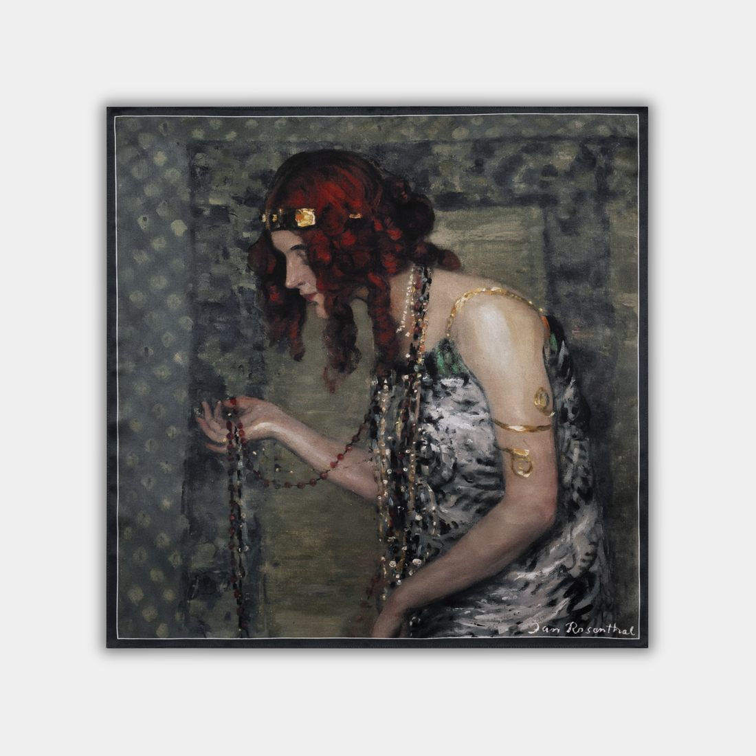 Zīda lakatiņš ar Jānis Rozentāls gleznu – tas ir elegants un grezns jūsu stila akcents....