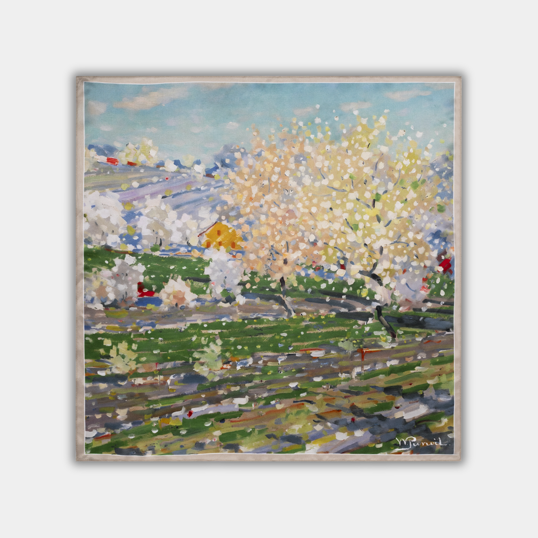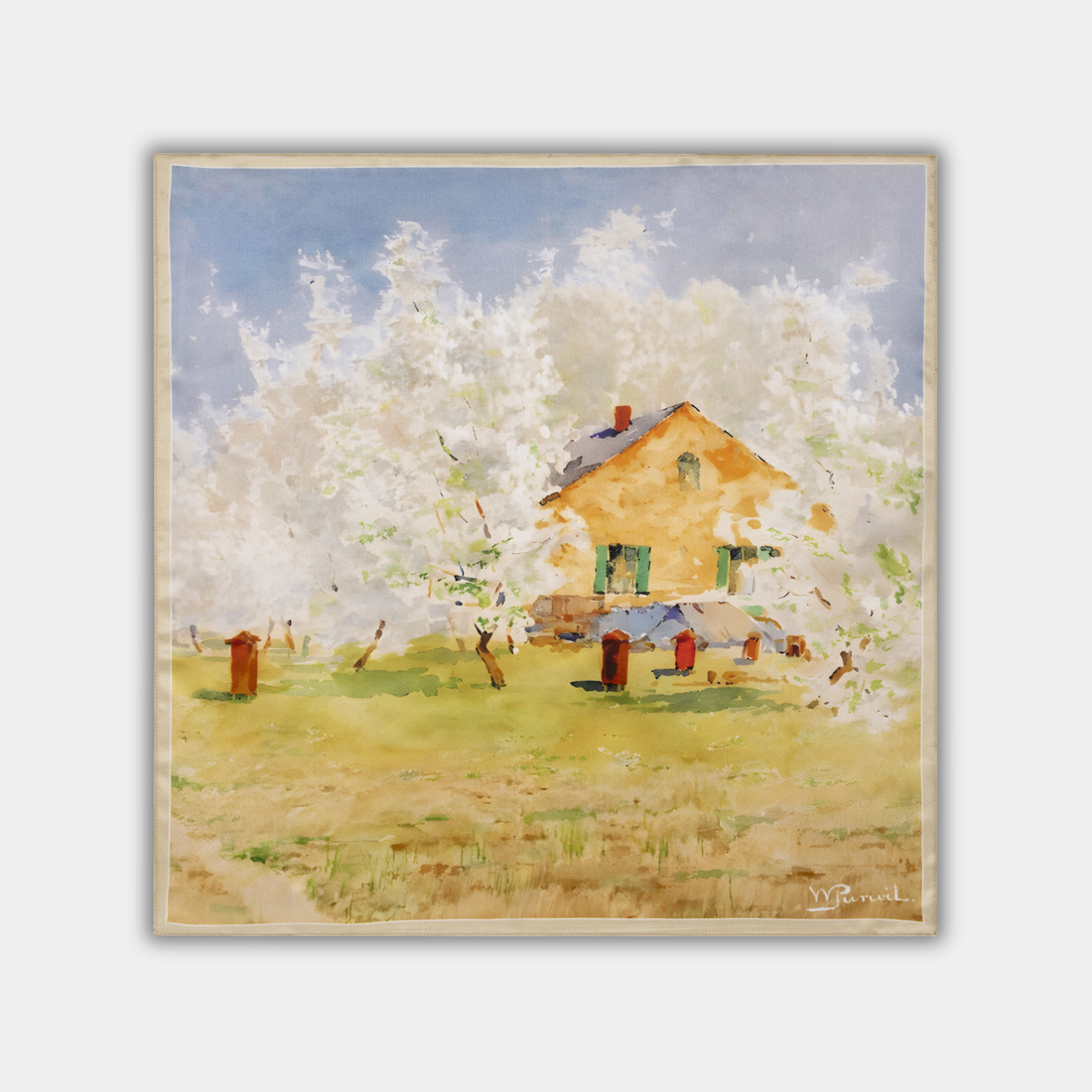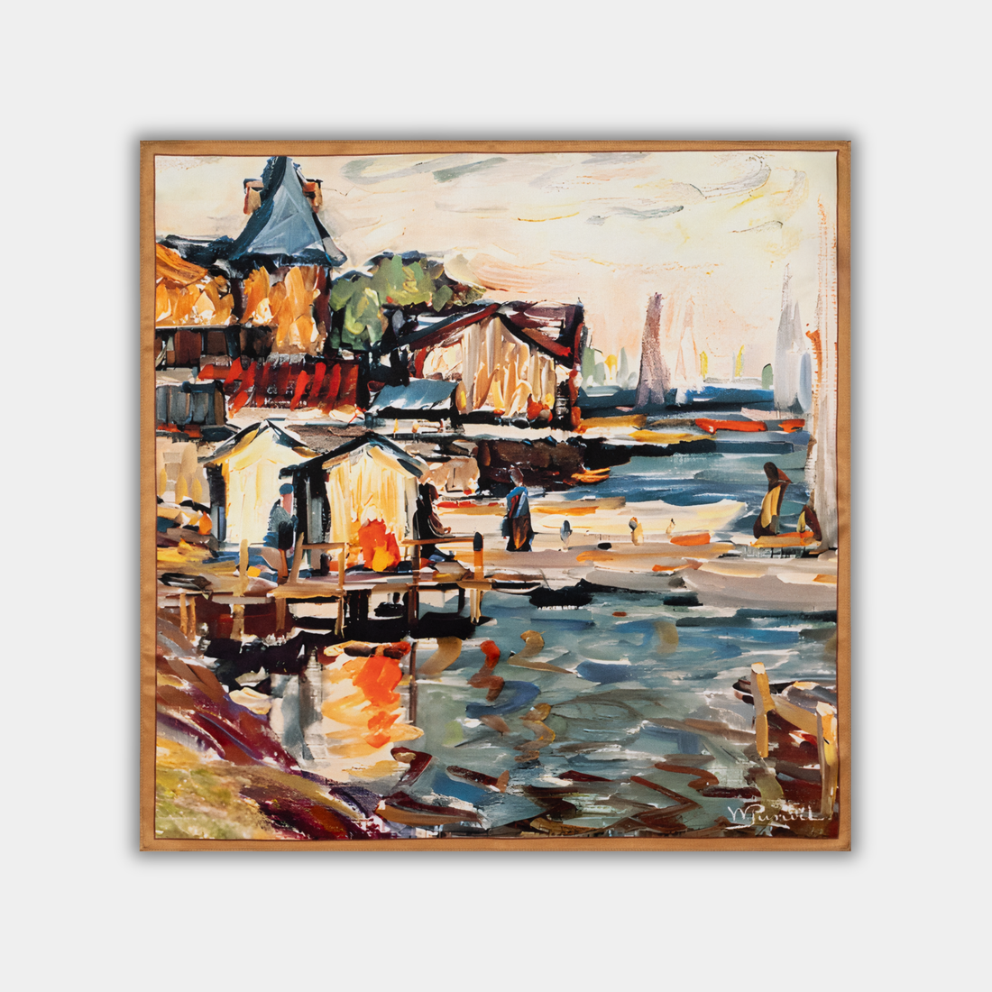 Zīda lakatiņš ar Rūdolfs Pērle gleznu – tas ir elegants un grezns jūsu stila akcents....