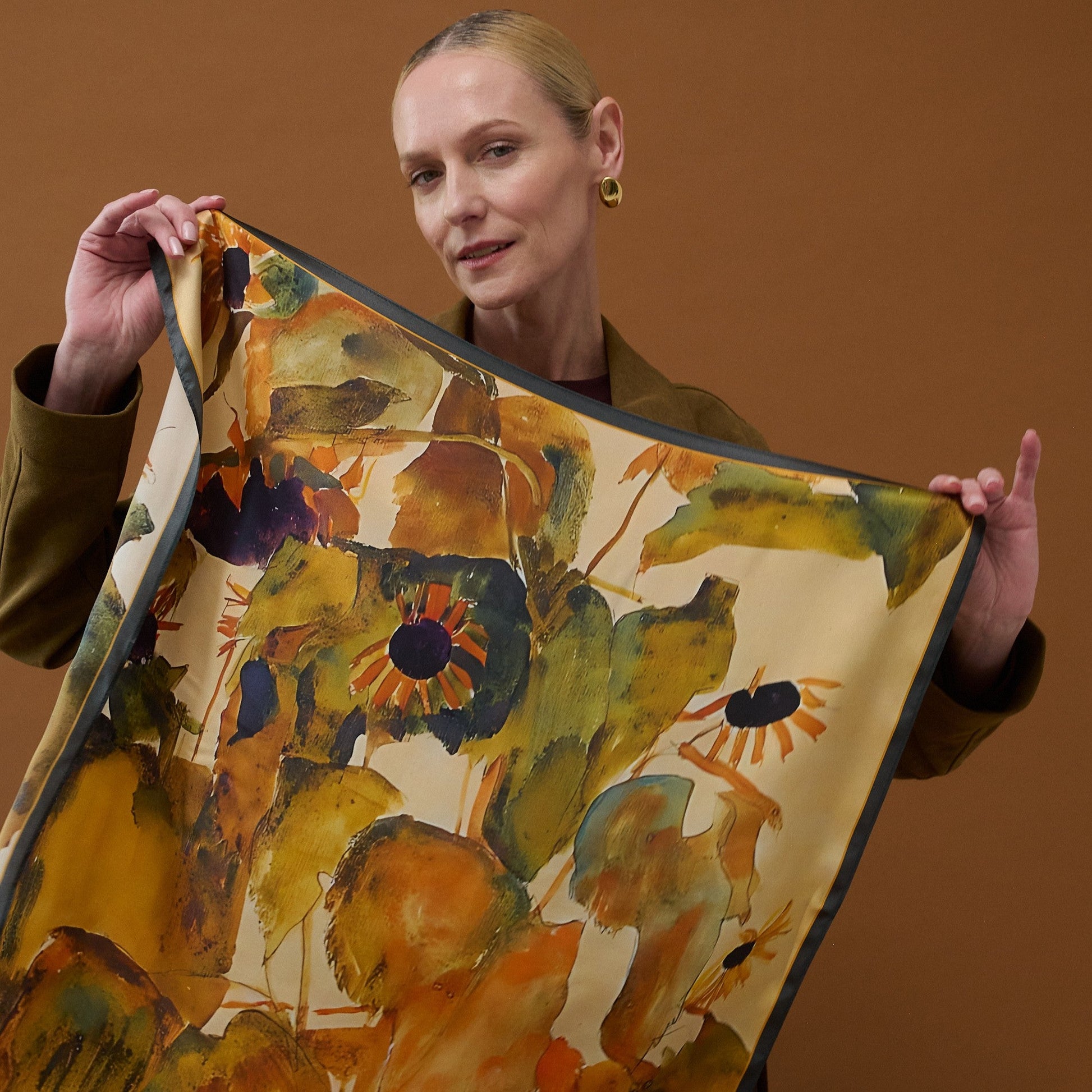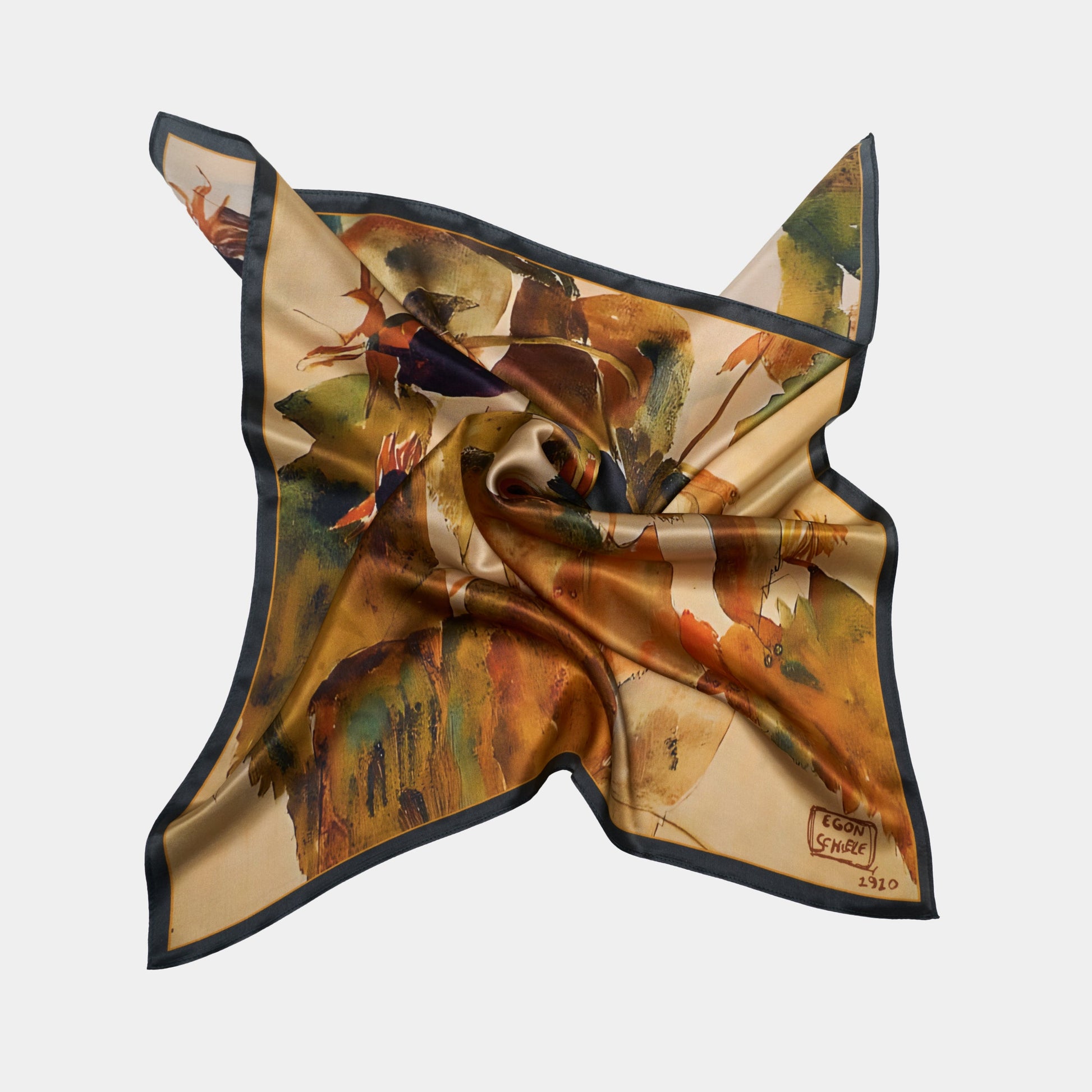 Egon Schiele – ekspresionisma dumpinieks, kas atsedza cilvēka dvēseles dziļumus. Viņa darbi ir intensīva līniju un krāsu deja, kur katrs triepienis pulsē ar emocijām un iekšēju spēku. Drosmīgās līnijas un toņi atklāj dzīves trauslumu un kaisli, bet šī neatkārtojamā ekspresija atdzīvojas greznos zīda lakatos.