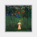 Henri Rousseau – mākslinieks, kurā realitāte saplūst ar fantāziju. Viņa sapņainais, it kā naivais stils atver jaunas mākslas telpas, kur eksotiski augi, noslēpumainas figūras un mežonīgas džungļi elpo mistiku un harmoniju. Tā ir modernisma poēzija, kas aicina uz sapņu ainavām un atdzīvojas greznos zīda lakatos.