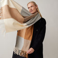 Izgatavota no 30% kašmira vilnas, 35% viskozes, 30% poliestera un 5% akrila, šis aksesuārs izceļas ar maigumu, izturību un lieliski papildina dažādus tēlus.