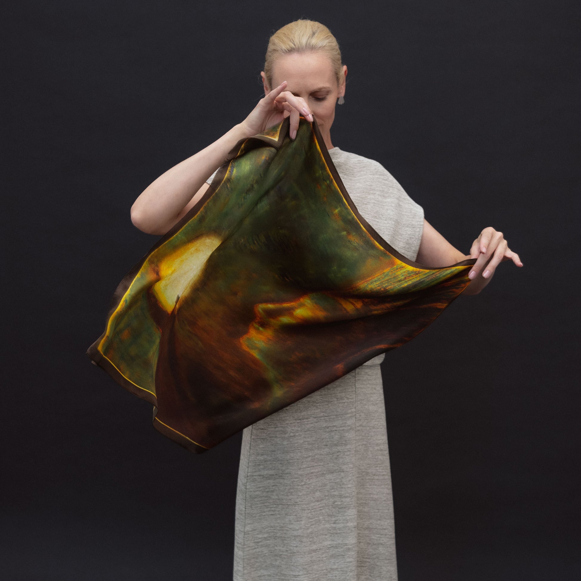 Zīda lakats ar M.K. Čiurlionis gleznu – jūsu elegantais un greznais stila akcents. Izskatieties apburoši!