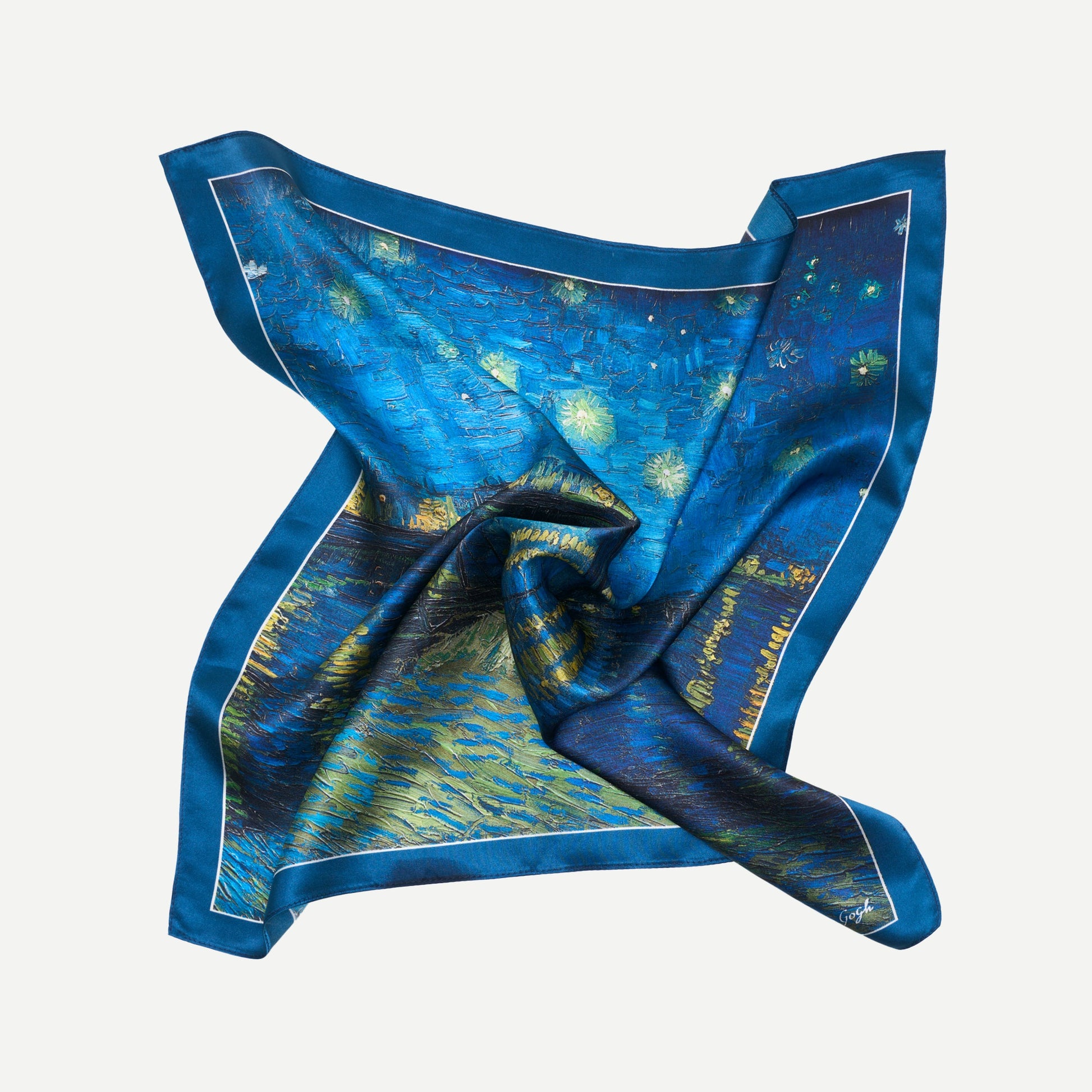 Vincent van Gogh – viens no slavenākajiem postimpresionisma māksliniekiem, kura darbi aizrauj ar emociju intensitāti, dzīvīgiem triepieniem un krāsu ekspresiju. Viņa gleznas, kas atklāj dabas skaistumu, iekšējo pasauli un cilvēcisku jūtīgumu, atdzīvojas greznos zīda lakatos.