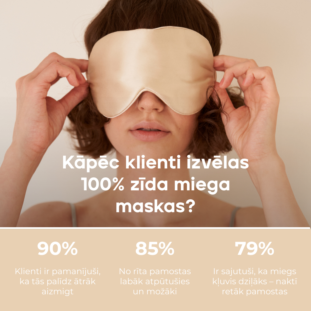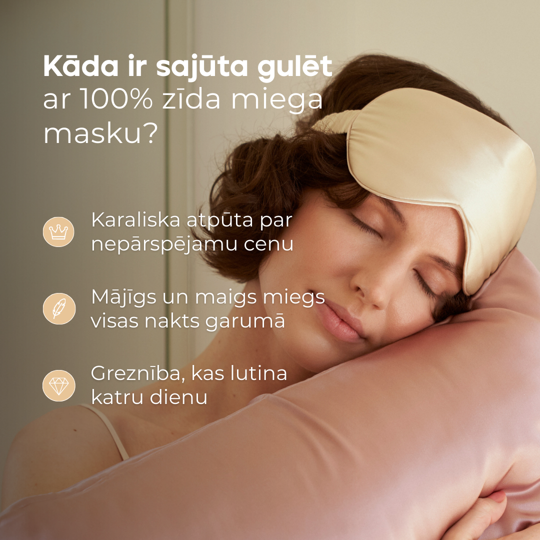 Ienirstiet greznā komfortā ar donum. 100% zīda miega masku. Mūsu zīda maskas ir radītas tā, lai bloķētu pat vismazākos gaismas starus un maigi apņemtu jūsu acis ar tumsas plīvuru, kas veicina dziļāku un veselīgāku miegu.